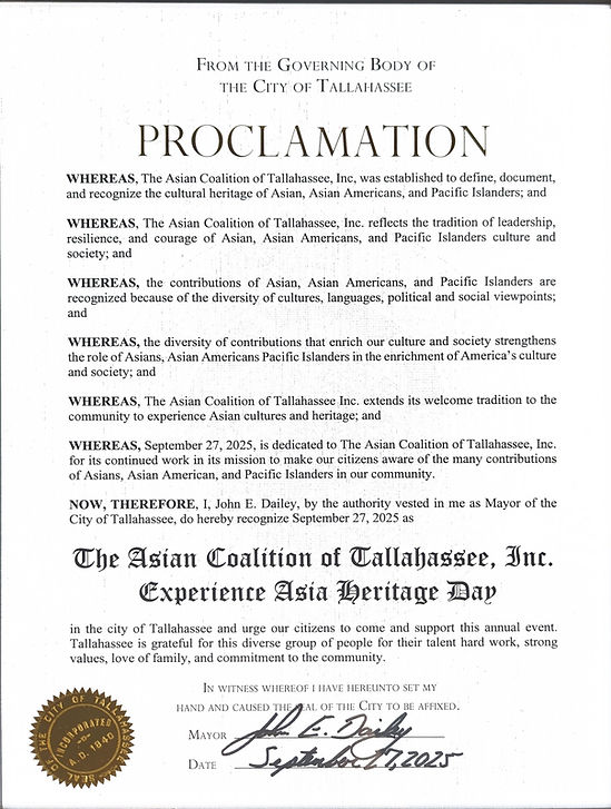 The Asian Coalition of Tallahassee (ACT) presets its annual Experience Asia Festival for 2025 on Saturday, September 27th from 10 a.m. to 6 p.m. at Tom Brown Park. Featuring free admission, the family-friendly festival celebrates the diversity of Asian and Asian Pacific cultures through performances, demonstrations, cuisine, crafts, and more. Experience Asia features more than 60 vendors of food, arts, crafts, clothing, jewelry, and other cultural items that are available for purchase.